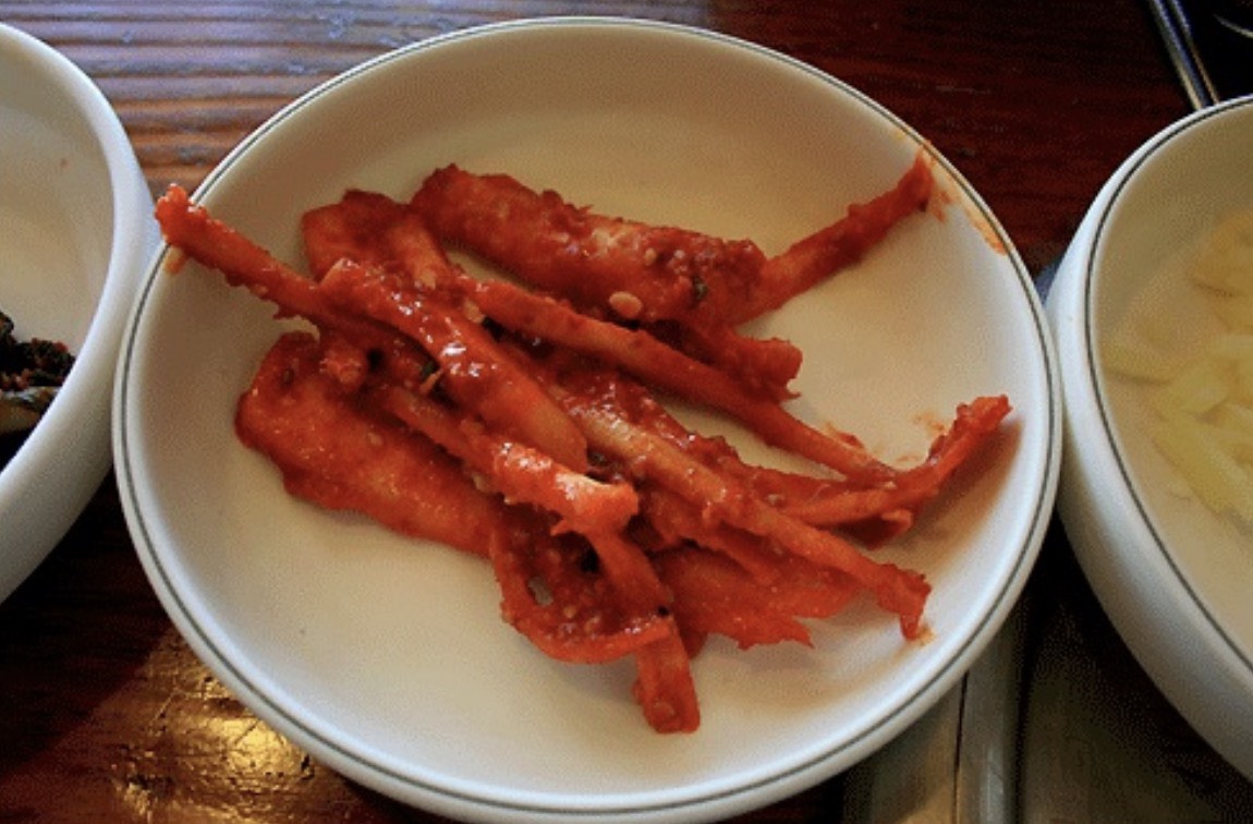 도라지 양의 1/4 정도 진미채를 섞어 무치면 쫄깃한 식감이 더해져 아이들이 매우 좋아하며, 감칠맛도 훨씬 상승합니다.