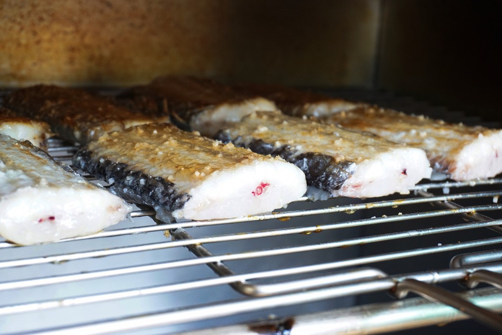 갈치를 올린 뒤 처음에는 중강불에서 1~2분 정도 구워 겉면을 단단하게 고정합니다. 그 후 중약불로 줄여 속까지 천천히 익힙니다.