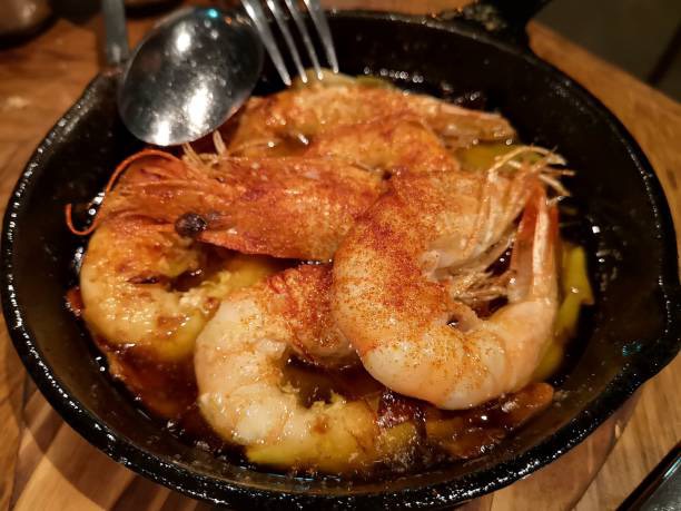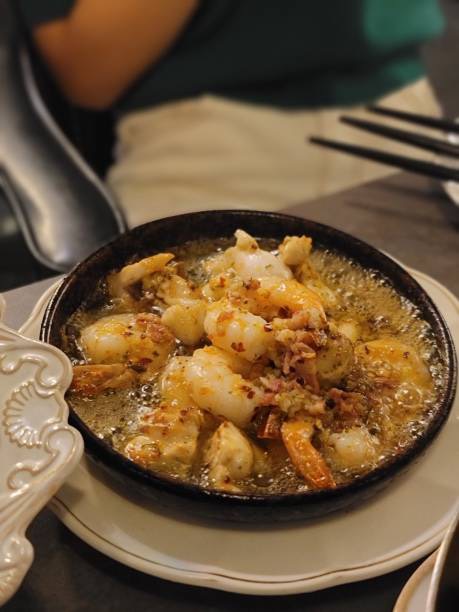 감바스 알 아히요(Gambas al Ajillo)라는 이름은 스페인어로 그 구성 요소를 정직하게 담고 있습니다. 감바스(Gambas)는 새우를 뜻하며, 아히요(Ajillo)는 마늘을 의미하는 아호(Ajo)에서 파생되어 마늘 소스 혹은 마늘과 함께 조리된 상태를 뜻합니다. 즉, 직역하면 마늘과 함께 요리한 새우라는 명쾌한 의미를 지니고 있습니다.