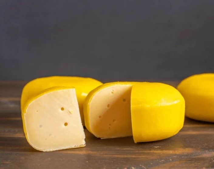 고다치즈는 전통적으로 소젖을 사용해 반경성 치즈 형태로 만들어집니다.