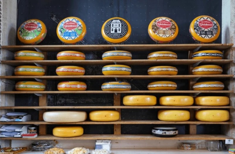 첫 단계로 우유에 렌넷과 스타터 문화균을 넣어 응유를 형성한 후, 응유를 자르고 교반하여 유청을 분리합니다. 고다치즈의 핵심은 이 응유를 세척(washing curds)하는 과정인데, 여기에 뜨거운 물을 넣어 응유 속 유당을 줄이고 산도를 낮춥니다. 이 덕분에 고다치즈는 일반 치즈보다 더 달고 부드러운 맛을 얻게 됩니다. 이후 틀에 넣어 압착하고, 소금물에 절인 후 일정 온도와 습도에서 몇 주에서 몇 년까지 숙성시킵니다. 숙성 중에는 치즈 겉면에 왁스나 밀랍을 발라 건조와 산패를 방지하며, 이 과정에서 치즈의 색, 질감, 풍미가 형성됩니다. 숙성 기간이 길수록 조직은 단단해지고 풍미는 진해지며, 치즈결정이 나타나기 시작합니다.