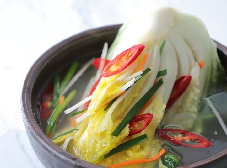 고춧가루를 넣지 않고 담근 담백한 김치로, 어린이나 노약자에게 적합합니다.