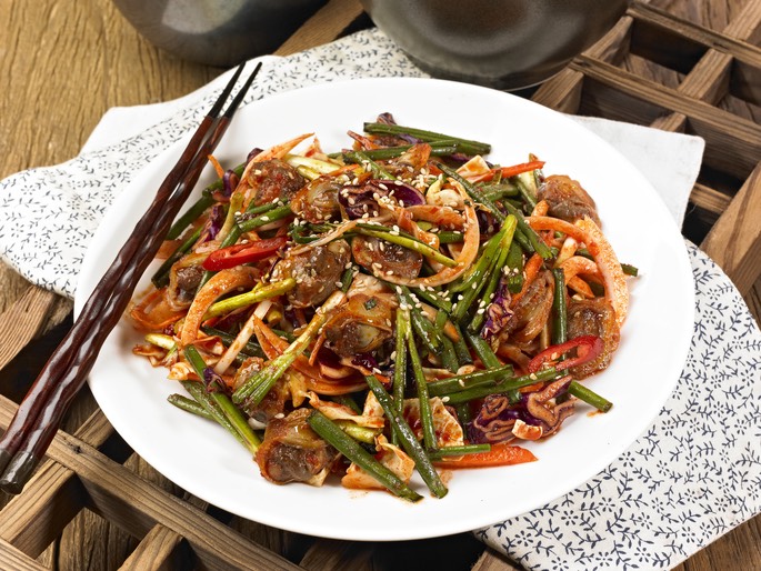 100g 당 약 120kcal ~ 150kcal 정도로 추정됩니다. (사용하는 양념의 종류와 양에 따라 차이가 있을 수 있습니다. 특히 설탕이나 물엿, 참기름 등의 양에 따라 칼로리가 변동됩니다.)