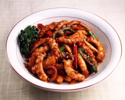 힘이 불끈 솟아나는 보양식으로 잘 알려진 낙지볶음은, 부드러우면서도 쫄깃한 낙지의 식감에 매콤달콤한 양념이 깊이 스며들어 한국인의 입맛을 사로잡는 대표적인 볶음 요리입니다. 특히 낙지에는 '바다의 산삼'이라 불릴 만큼 풍부한 타우린 성분이 함유되어 있어 원기 회복과 피로 해소에 탁월한 효과를 보이며, 매운맛을 통해 잃어버린 입맛을 되찾아주는 미식의 경험을 선사합니다. 양파, 양배추, 대파 등 신선한 채소와 함께 센 불에서 빠르게 볶아내어 불 맛과 아삭함을 살리는 것이 이 요리의 핵심으로, 뜨끈한 밥에 얹어 비벼 먹거나 소면 사리를 추가하여 즐기는 것이 일반적입니다.