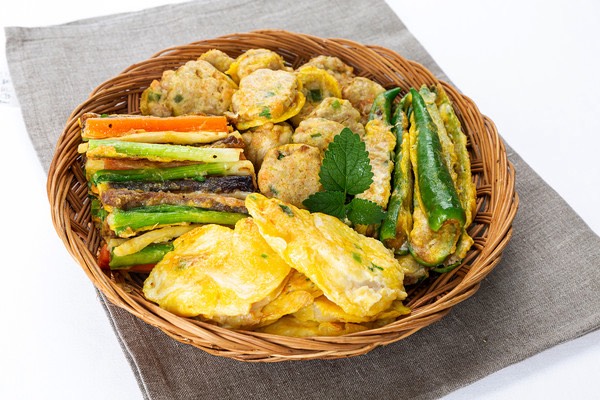 꼬지전, 동태전, 완자전(동그랑땡), 깻잎전, 호박전, 표고버섯전, 고추전 등 냉장고에 남은 모든 전을 활용할 수 있으며 가급적이면 모양을 살려 준비하는 것이 좋습니다.