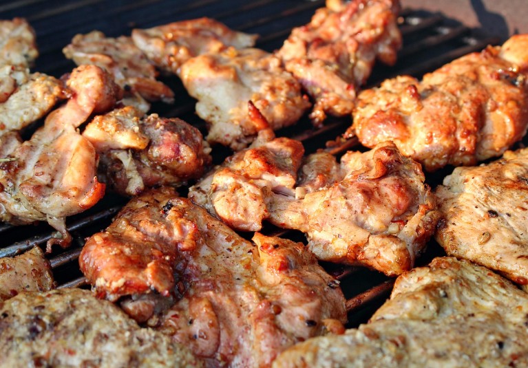 • 닭다리살이나 닭날개를 양념해 구우면 맛이 진하고 촉촉합니다.