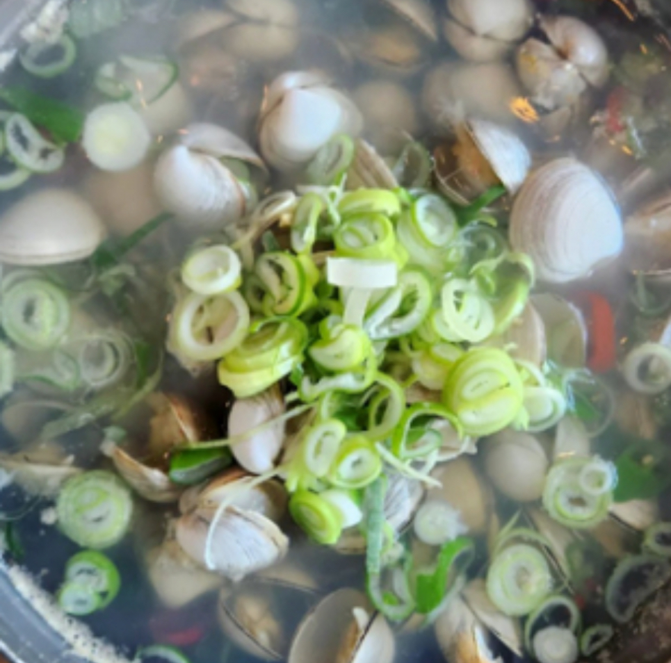 마지막에 대파를 넣고 1분 정도 더 끓인 뒤 소금, 후추로 간을 맞추면 시원하고 깊은 맛의 동죽조개탕이 완성됩니다.