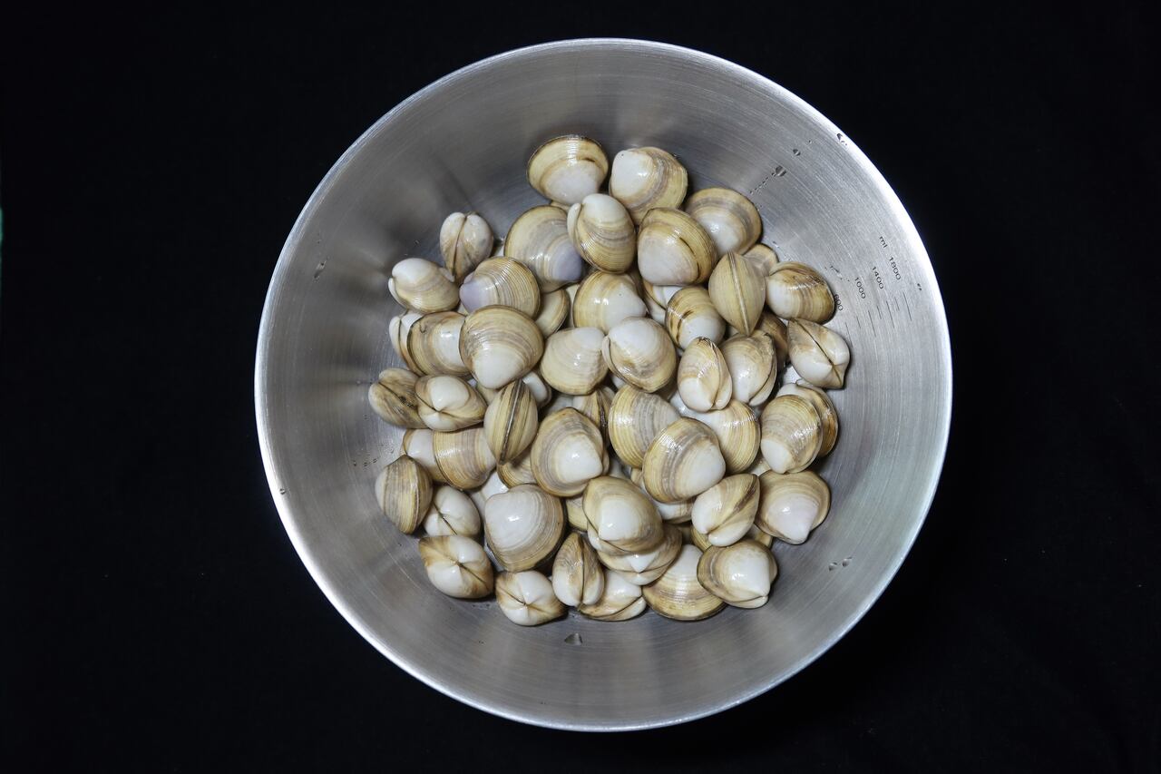 – 미리 해감해둔 조개를 깨끗이 헹굽니다.