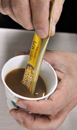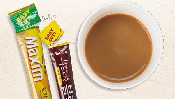 ③ 믹스커피를 우유에 타면 달콤한 카페라떼 풍미가 나며, 어린 층이나 커피가 약한 사람에게 좋습니다.