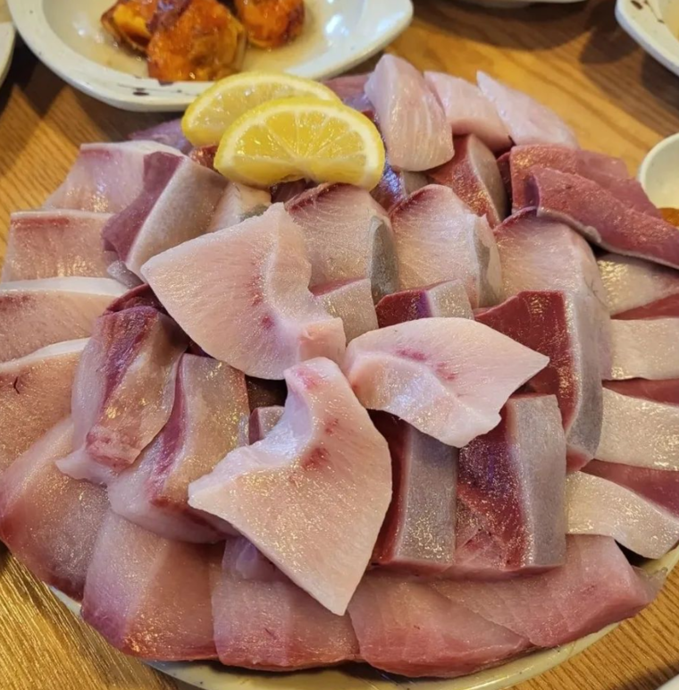 제철 대방어는 기름이 올라와 회로 먹기에 최적이며, 와사비 간장 또는 참기름 소금장과 함께 즐깁니다.