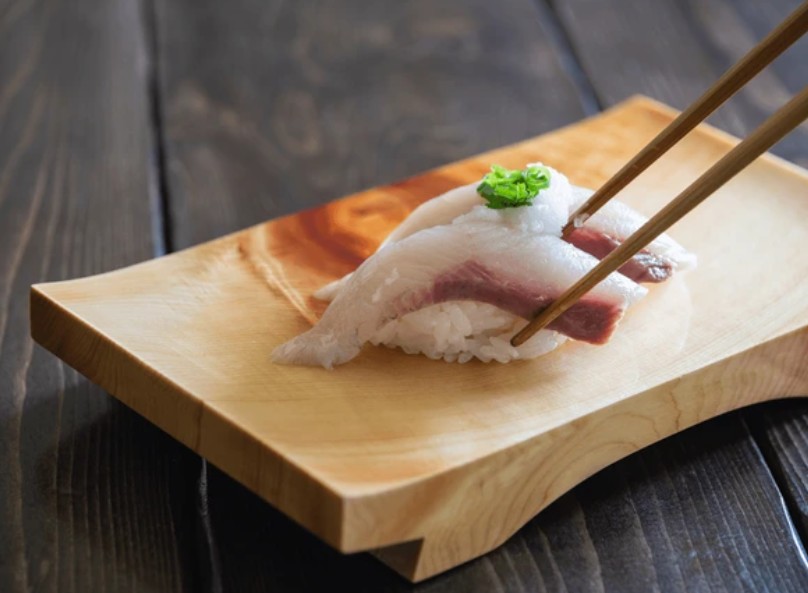 밥 위에 얇게 썬 방어를 얹어 먹는 형태로, 기름진 맛과 식초밥의 조화가 뛰어납니다.