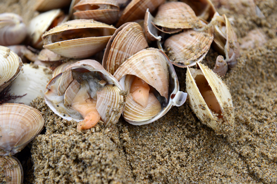 물이 빠진 간조 때 모래사장을 손이나 작은 삽으로 파내면 조개가 나옵니다.