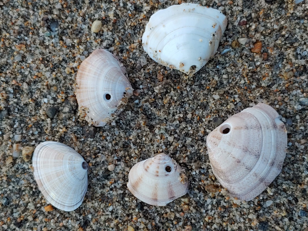 백합조개는 갯벌의 작은 구멍이나 모래 위에 남은 흔적을 보고 위치를 추정할 수 있습니다.