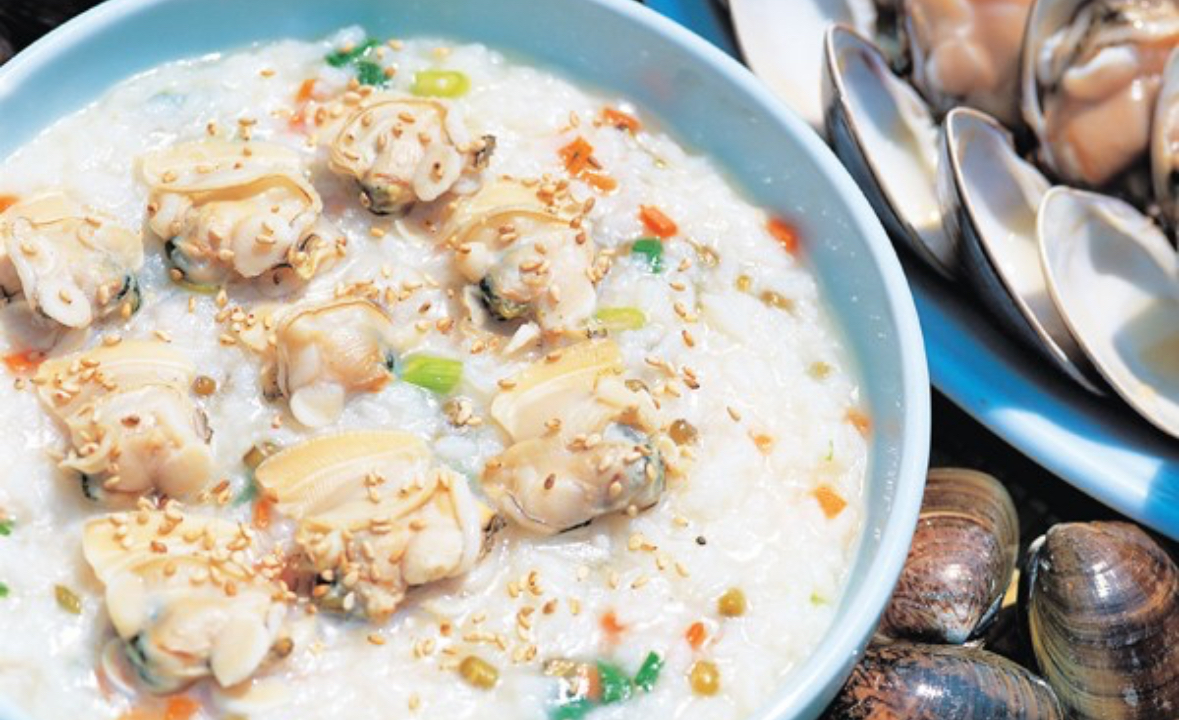 잘게 썬 조개살을 죽에 넣어 끓이면 부드럽고 영양가 높은 환자식이 됩니다.