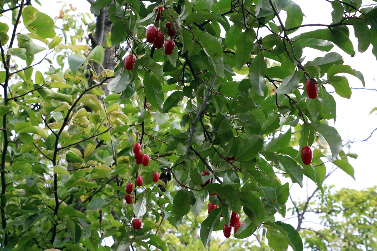 열매는 처음에는 초록색을 띠고, 시간이 지나면서 붉게 변하며 완전히 익으면 선명한 붉은색 또는 주홍빛을 띕니다. 이 시기에 가장 맛이 좋고 당도도 높으며, 효능이 뛰어납니다. 과일이 너무 익으면 쉽게 물러지므로 적당히 익었을 때 수확하는 것이 중요합니다.