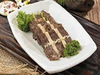 근육이 탄탄하고 지방이 적당히 섞여 있어 산적용으로 선호되는 부위입니다. 구웠을 때 육즙이 살아 있어 풍미가 좋습니다.