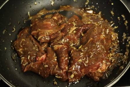 고기에 양념을 미리 30분~1시간 정도 재워두면 양념이 잘 배어 풍미가 깊어집니다.