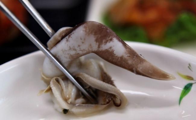 해감이 끝난 새조개는 껍질을 벌려 속살을 꺼냅니다. 살은 얇고 부드러워 다치지 않게 조심스럽게 꺼내야 합니다.