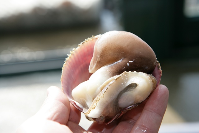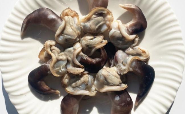 해감이 끝난 새조개는 껍질을 벌려 속살을 꺼냅니다. 살은 얇고 부드러워 다치지 않게 조심스럽게 꺼내야 합니다.