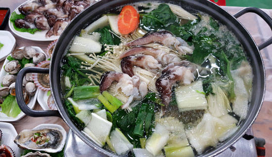 대표적인 조리법으로, 끓는 육수에 살짝 담갔다 꺼내 초고추장이나 간장 소스에 찍어 먹습니다. 살짝 익혔을 때 단맛이 가장 진하게 느껴집니다.