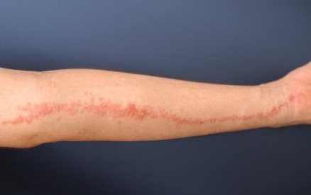 선형으로 배열된 붉은 구진