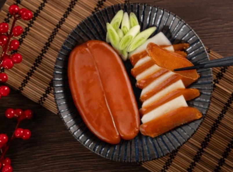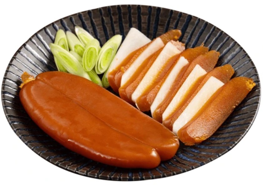 건조된 숭어어란을 얇게 썰어 약불에 구워 먹으면 고소하고 짭조름한 별미로 즐길 수 있습니다.
