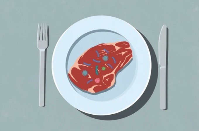보통은 음식 섭취로 발생하지만, 대변-구강 감염 경로를 통해 사람 간 감염도 가능합니다.