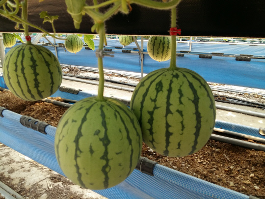 애플수박은 덩굴식물로, 줄기(덩굴)가 여러 갈래로 뻗으며 자라는데, 순치기(곁순 따기)를 통해 영양분을 집중시켜야 열매가 크게 잘 익고 당도도 높아집니다.
