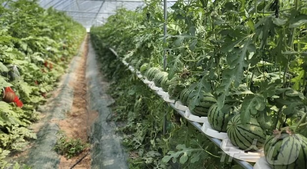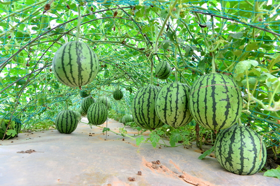 애플수박은 덩굴식물로, 줄기(덩굴)가 여러 갈래로 뻗으며 자라는데, 순치기(곁순 따기)를 통해 영양분을 집중시켜야 열매가 크게 잘 익고 당도도 높아집니다.