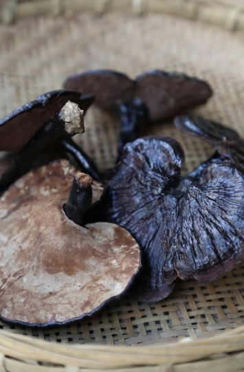 마른 영지버섯은 흐르는 물에 부드럽게 문질러 먼지나 이물질을 제거합니다.