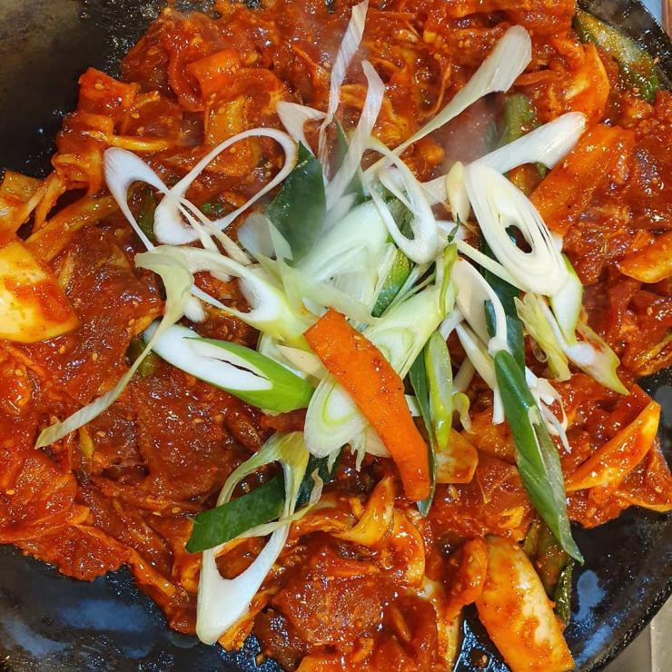자극적인 고추 양념과 기름진 식재료가 위장을 자극할 수 있으므로 소화력이 약한 사람은 야채 비율을 늘리거나 양념을 줄이는 조절이 필요합니다.