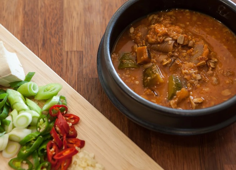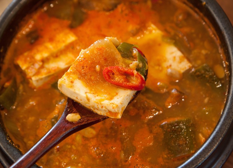 • 고추장과 청국장을 함께 넣어 끓이는 형태로, 맵고 구수한 맛이 조화를 이루며 감칠맛이 강합니다.