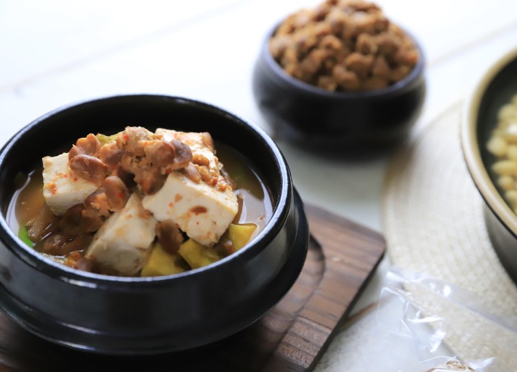 • 두부에 곁들이기: 청국장을 데우지 않고 생으로 두부에 올려 먹으면 소화에 좋은 건강식이 됩니다.