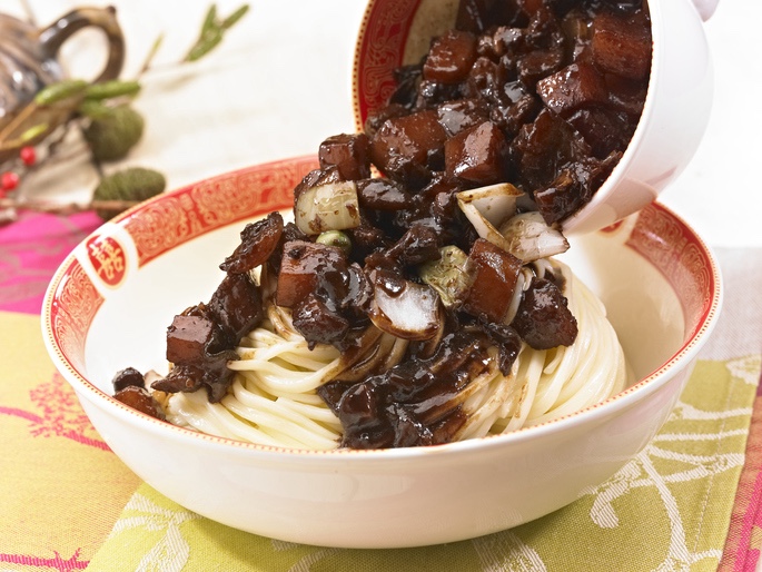 탕수육, 가지튀김 등에 묽게 푼 춘장을 걸쭉하게 끓여 소스화.