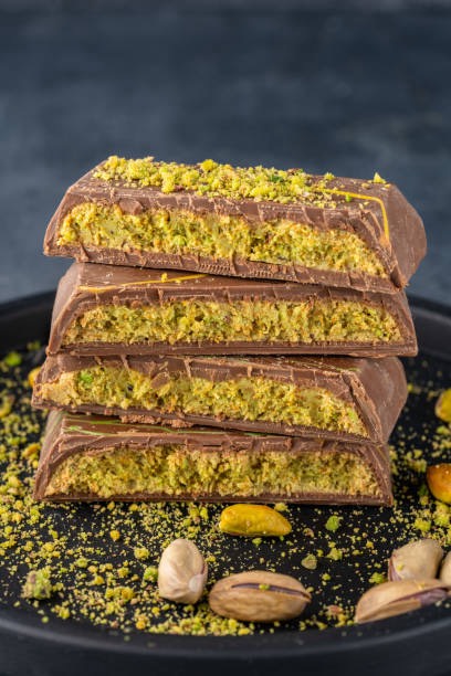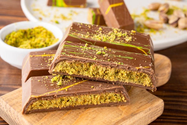 현재 가장 핫한 활용법으로, 볶은 카다이프를 피스타치오 스프레드와 섞어 초콜릿 안에 가득 채우는 방식입니다. 초콜릿의 부드러움과 카다이프의 바삭함이 만나 입안에서 '파삭'하고 터지는 소리가 일품입니다. 집에서도 시판용 볶은 카다이프만 있다면 누구나 쉽게 따라 할 수 있어 SNS 상에서 큰 인기를 끌고 있습니다.