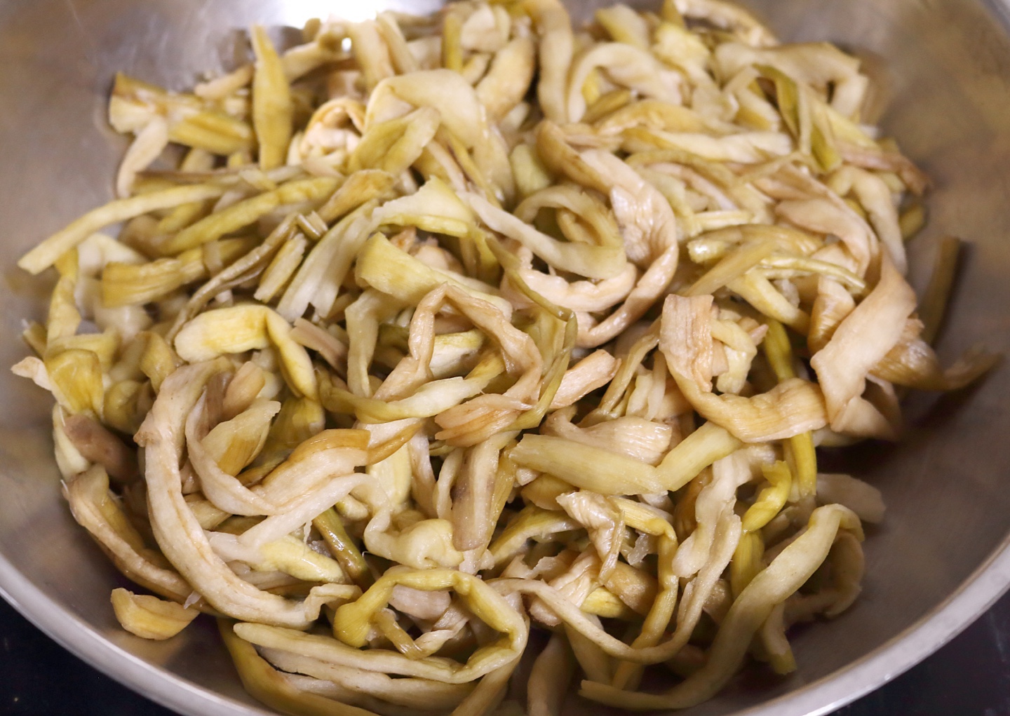 삶은 후 30분 정도 물에 담가 놓으면 식감이 더 부드러워지고 양념이 잘 배는 상태가 됩니다.