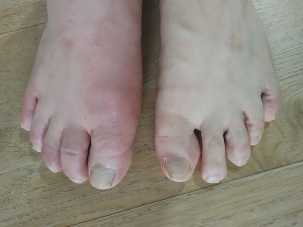 • 붉어지고 뜨거워진 관절 부위