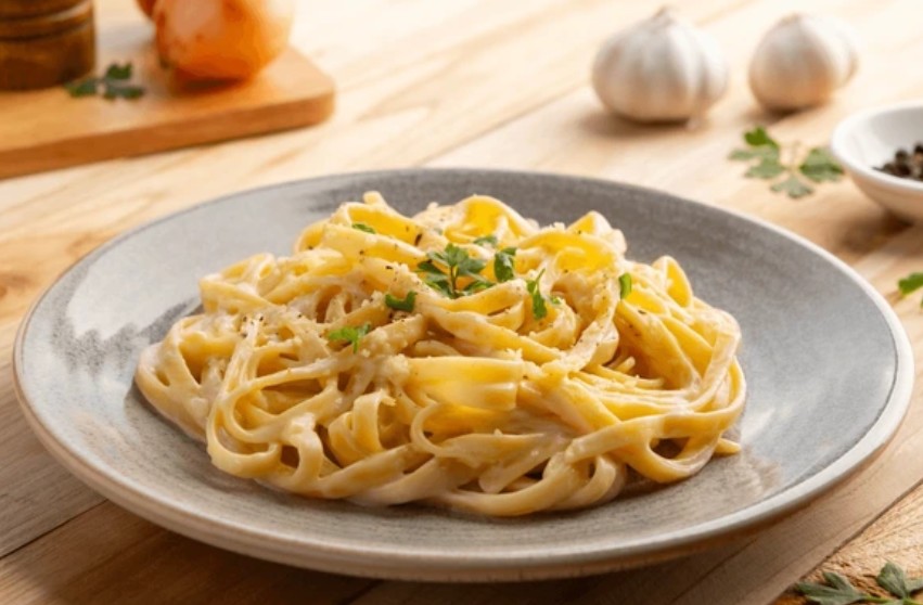 버터, 생크림, 파마산 치즈로 만든 크리미한 소스와 함께 즐기는 가장 유명한 요리입니다.