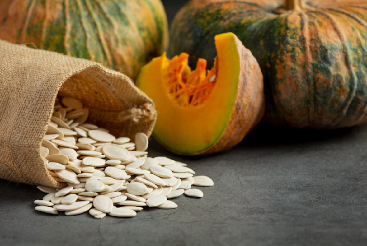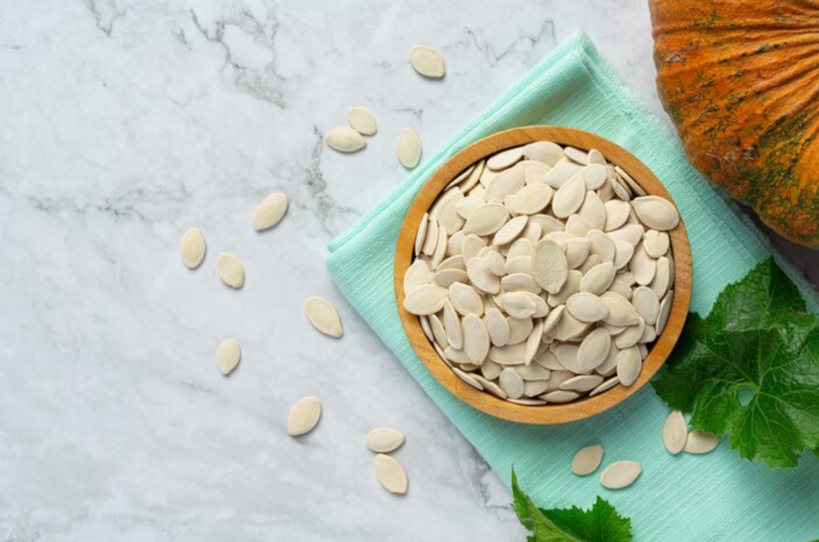 호박씨는 베타카로틴과 비타민 E가 풍부하여 활성산소를 억제하고 피부 노화 방지에 효과적입니다.